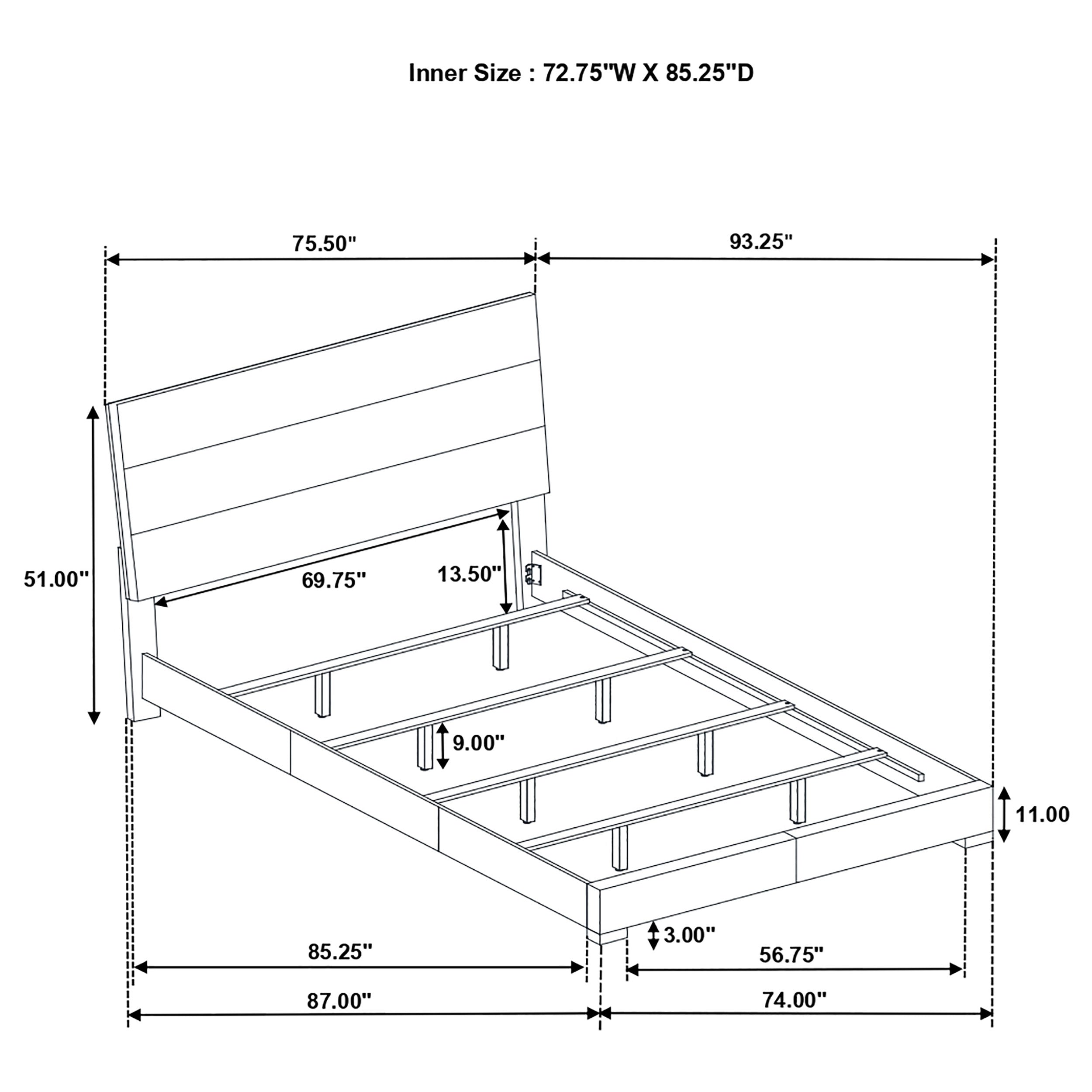 | California King Bed | 75.5" | 92.25" | 51.25" |