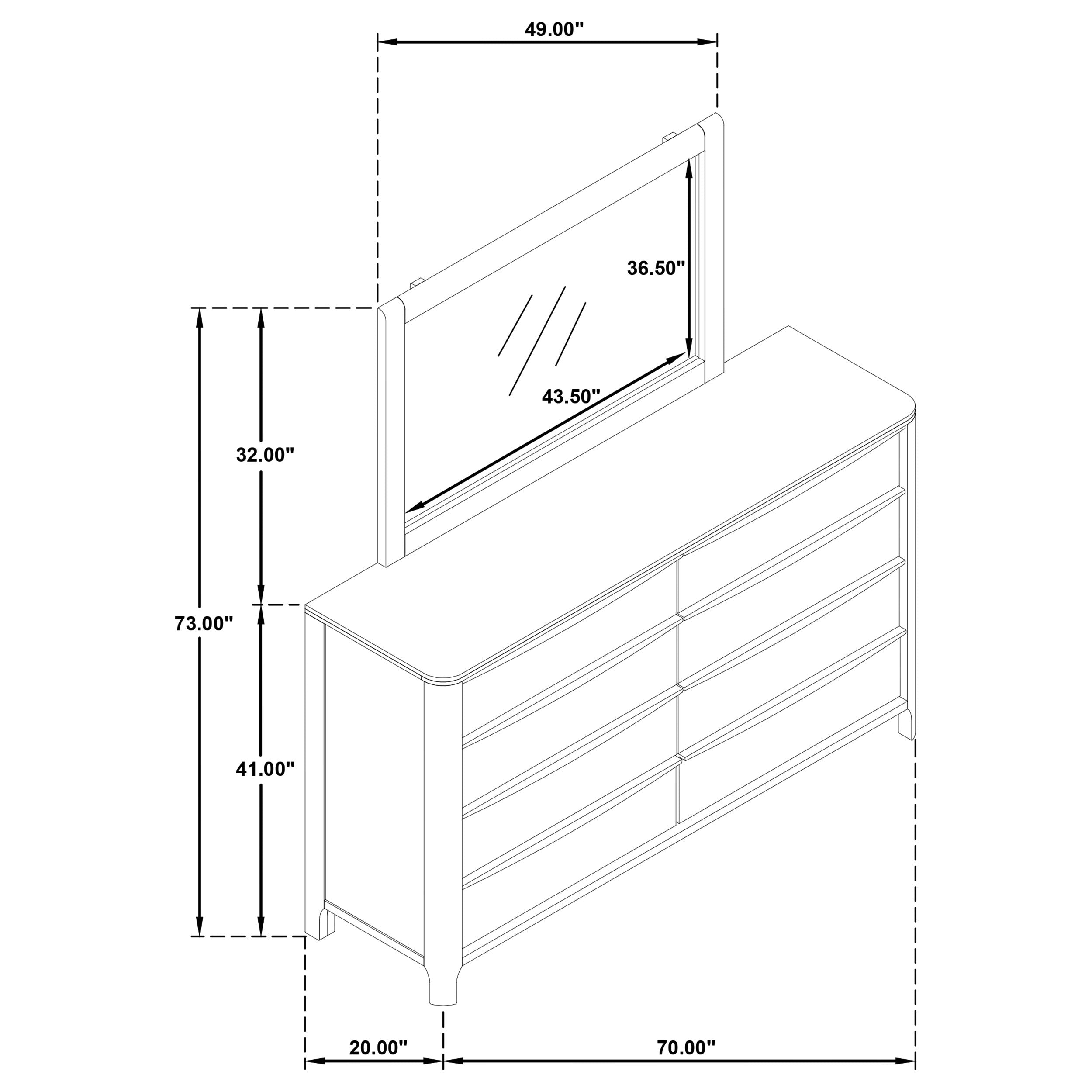 | Dresser With Mirror | 70" | 20" | 73.25" |