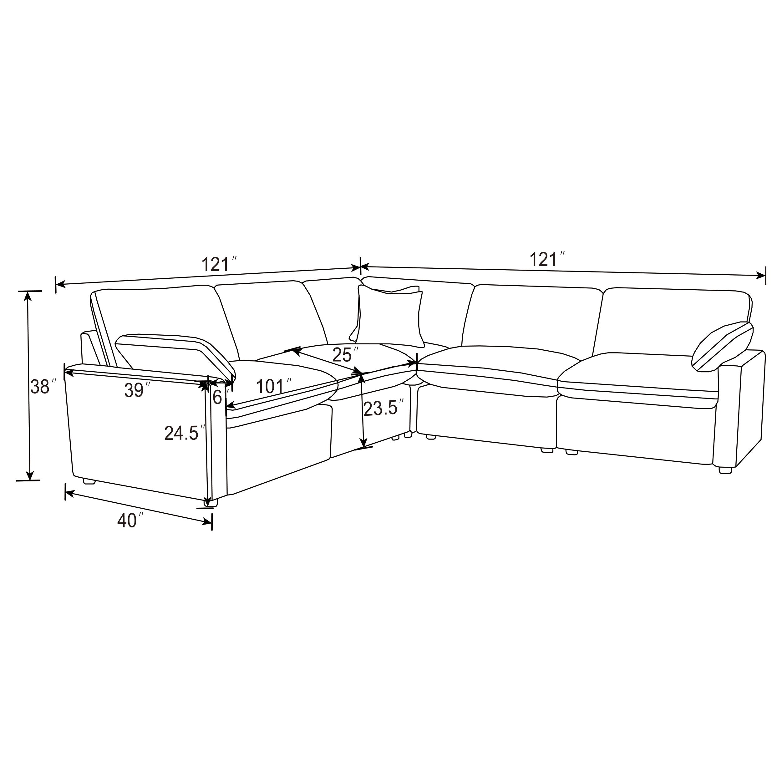 | Power Sectional | 121" | 121" | 38" |