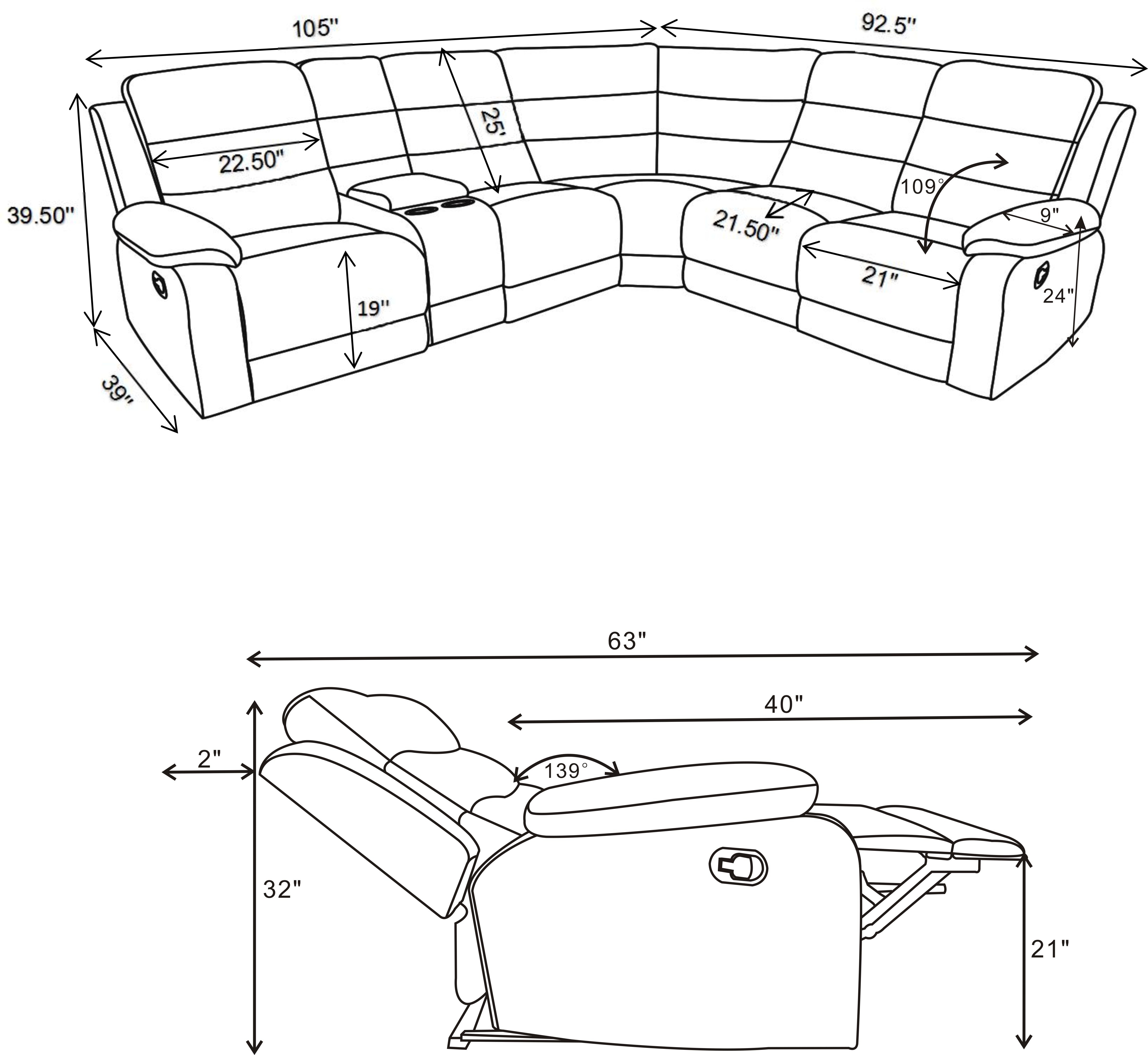| Sectional | 105.5" | 93" | 39.5" |