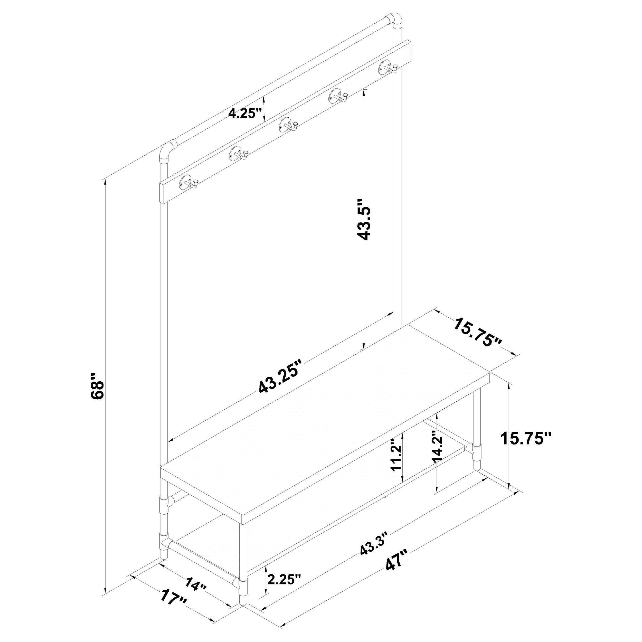 | Hall Tree | 47" | 17" | 68" |