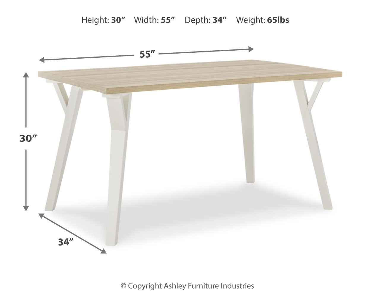 | Rectangular Dining Room Table | 34" | 55" | 30" |